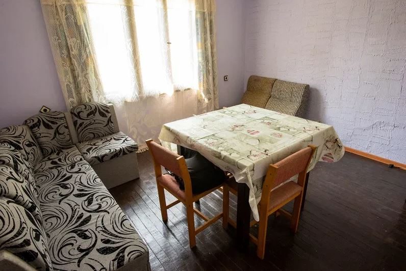 Es besteht aus zwei Schlafzimmern, Flur, Wohnzimmer mit Küchenzeile, Bad und WC.