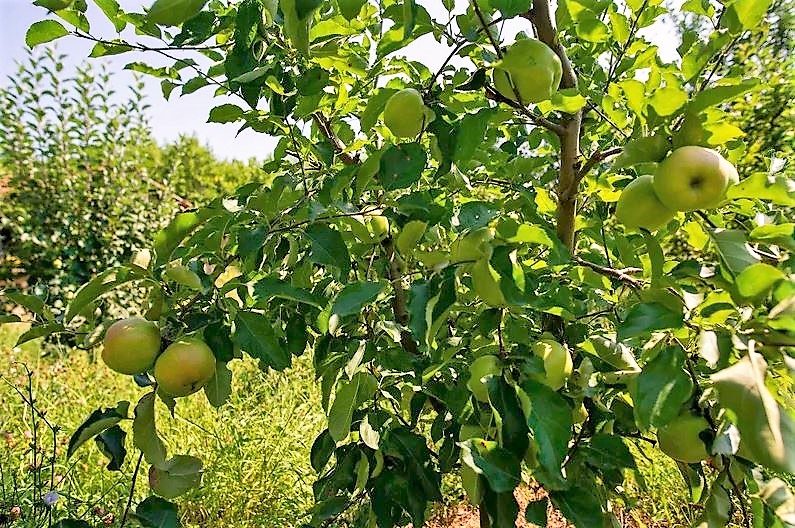 Im Garten gibt es einen Wasserbrunnen, ein altes Wirtschaftsgebäude und einen Obstgarten mit 50 verschiedenen Obstbäumen, Apfelbeeren, Brombeeren, Feigen.