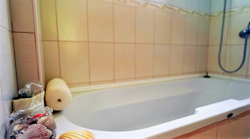 Badezimmer mit Badewanne und WC 10 qm.