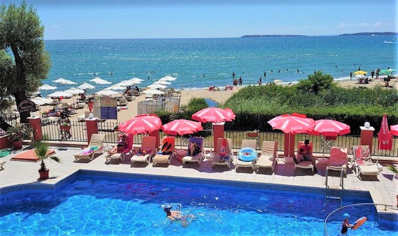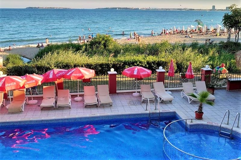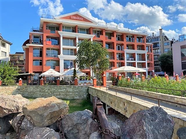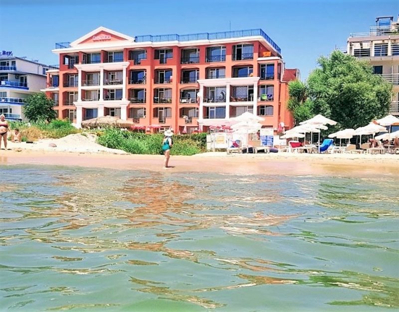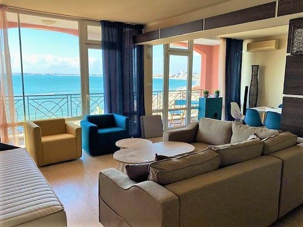 Apartment mit 1 Schlafzimmer und direktem Meerblick im Karina-Komplex in der ersten Reihe des Sonnenstrandes.