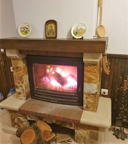 Kamin mit Luftkanälen in allen Räumen und Fluren.