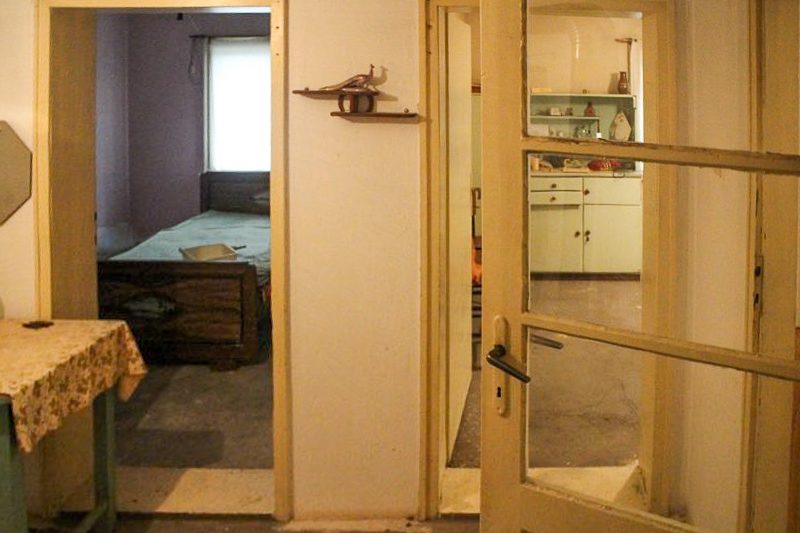 Erster Stock - Eingangshalle, Küche, zwei Räume, großer Keller.