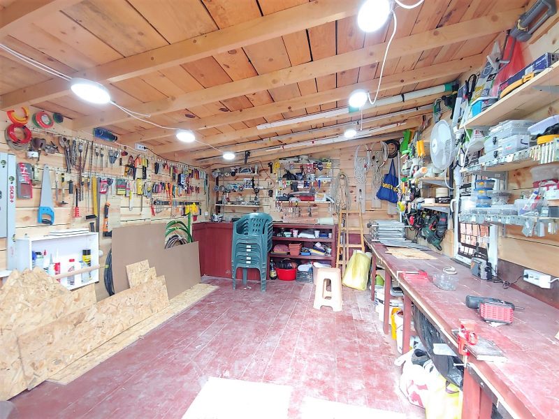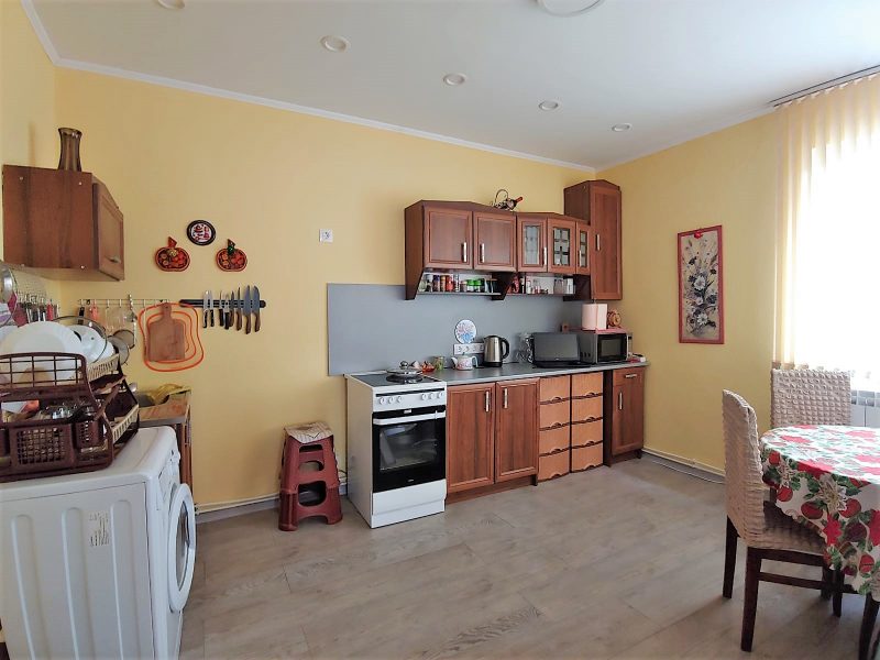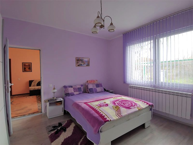 Das Haus liegt auf einem flachen Grundstück von 1100 qm, auf einer Asphaltstraße und in der Nähe des Zentrums. Mit einem neuen Zaun eingezäunt. Das Parken für drei Autos ist gemacht. Auf dem Grundstück befindet sich ein Gebäude für Gartengeräte und Brennholz, eine neue Werkstatt, ein Straßenspülbecken und eine Außendusche. Das Grundstück ist gepflegt, es gibt einen Weinberg und einen fruchtbaren jungen Garten.