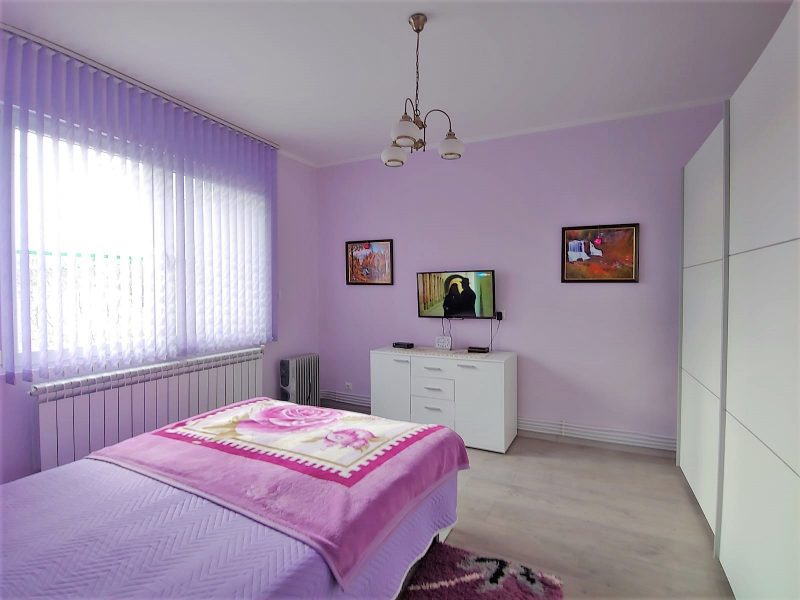 Haus mit einer Fläche von 90 qm, besteht aus: Eingangshalle, Wohnzimmer, Küche mit Esszimmer, Bad mit Dusche und zwei großen Schlafzimmern.