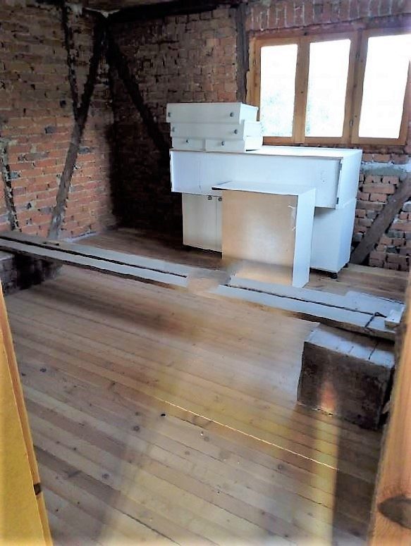 Der Garten des Hauses ist flach mit einem Bürgersteig vor dem Haupthaus und der Scheune (49 qm)