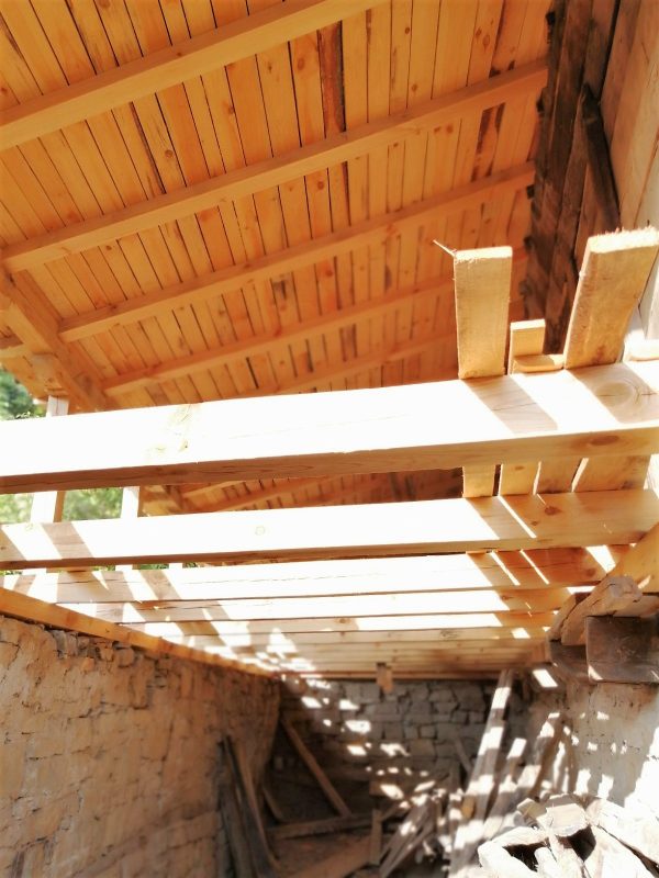 Im zweiten Stock befinden sich drei Zimmer, ein überdachter Schuppen, ein Schrank und eine geräumige Veranda mit Blick auf den Balkan.