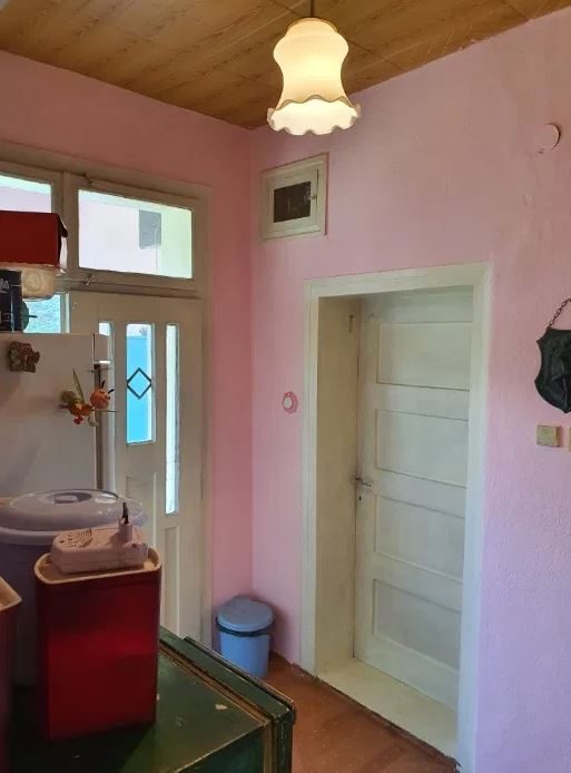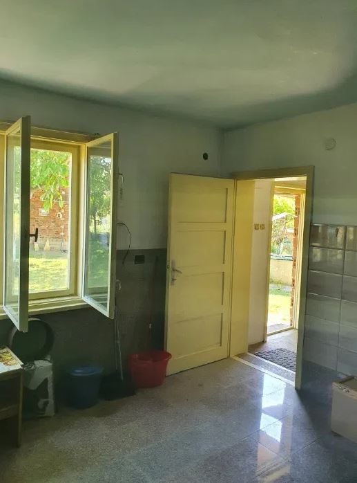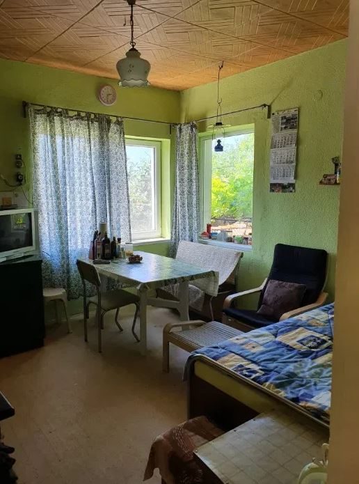 Zum Verkauf steht ein zweistöckiges Backsteinhaus mit einer Gesamtwohnfläche von 80 Quadratmetern. Im ersten Stock befindet sich ein Badezimmer mit Toilette, Keller und Abstellraum. Der zweite Stock verfügt über 2 Schlafzimmer, eine Küche und ein Wohnzimmer. Strom, Wasser und lokale Heizung sind vorhanden. Das Gebäude befindet sich in einem sehr guten baulichen und bewohnbaren Zustand. Das Anwesen umfasst eine 1800 Quadratmeter große, auf einer grünen Wiese mit Obstbäumen und einem Gemüsegarten unterteilte. Hier gibt es auch einen Brunnen zum Gießen. Ein stabiler Ziegelzaun umgibt das Haus. Das gesamte Anwesen ist sehr gepflegt.