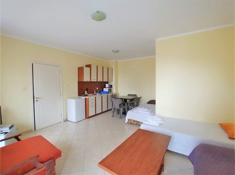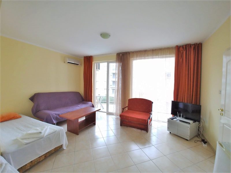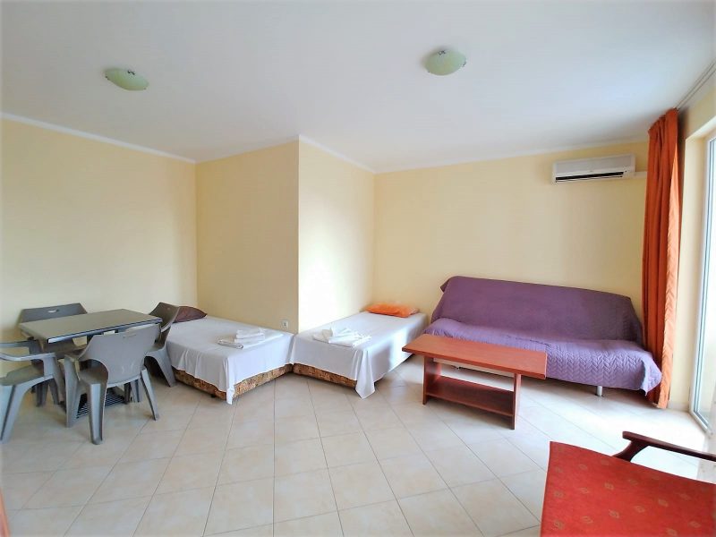 Der Komplex befindet sich in sehr günstiger Lage im Zentrum des Resorts, in einem ruhigen und friedlichen Teil des Resorts. Alle Unterhaltungsmöglichkeiten von Sunny Beach, einschließlich des Action-Wasserparks, sind nur 100 m vom Komplex entfernt. In der Nähe des Komplexes gibt es auch einen Supermarkt, der das ganze Jahr über geöffnet ist, mehrere Restaurants, ein Krankenhaus, einen Markt, eine Bank usw., was für einen dauerhaften Aufenthalt sehr praktisch ist.