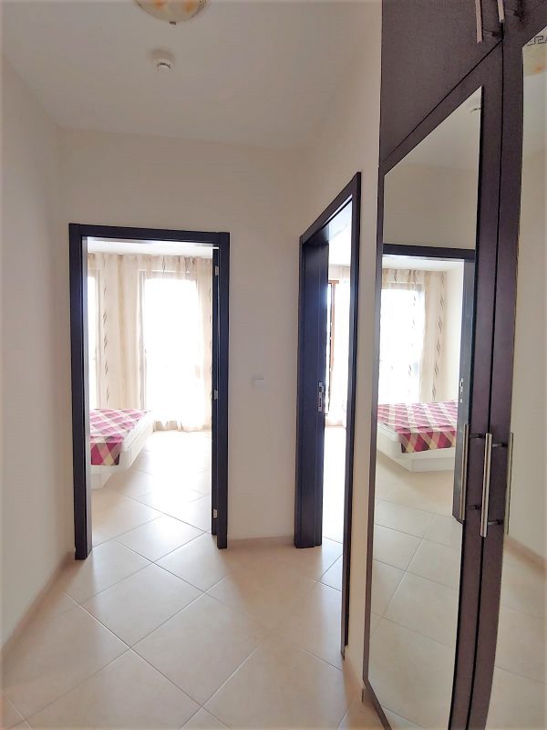 Die Wohnung hat eine Fläche von 57 qm und befindet sich im 5. Stock, einem der Gebäude mit Blick auf den Pool. Bestehend aus: Eingangshalle, Badezimmer mit Dusche, Wohnzimmer mit Küchenzeile, gemütlichem Schlafzimmer und großer Terrasse mit herrlicher Aussicht. Die Wohnung ist voll möbliert mit exzellenten Möbeln, ausgestattet mit Geräten und Textilien und ist voll bereit für einen komfortablen Aufenthalt.