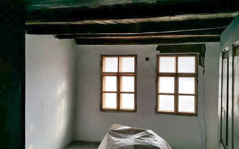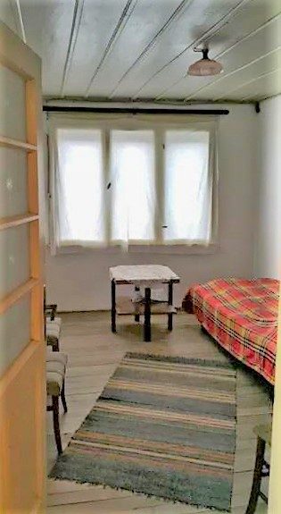 Der erste Stock des Hauses besteht aus 2 Schlafzimmern, einem Wohnzimmer und einem Keller, die durch einen kleinen Flur verbunden sind.
