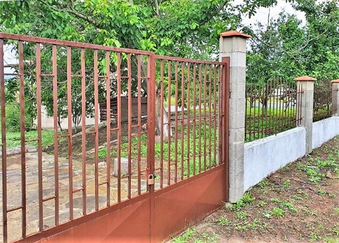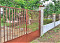 Das Grundstück ist von einem transparenten Metallzaun mit einem massiven Teil umgeben.