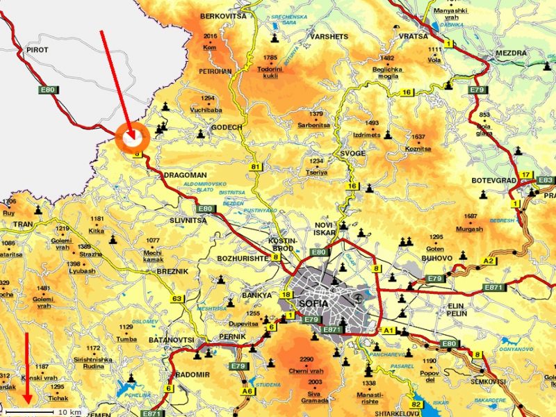 - Sofia (Flughafen): 40 km.