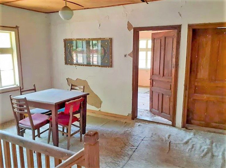 Das Obergeschoss ist eine Holzkonstruktion. Benötigt größere Reparaturen.