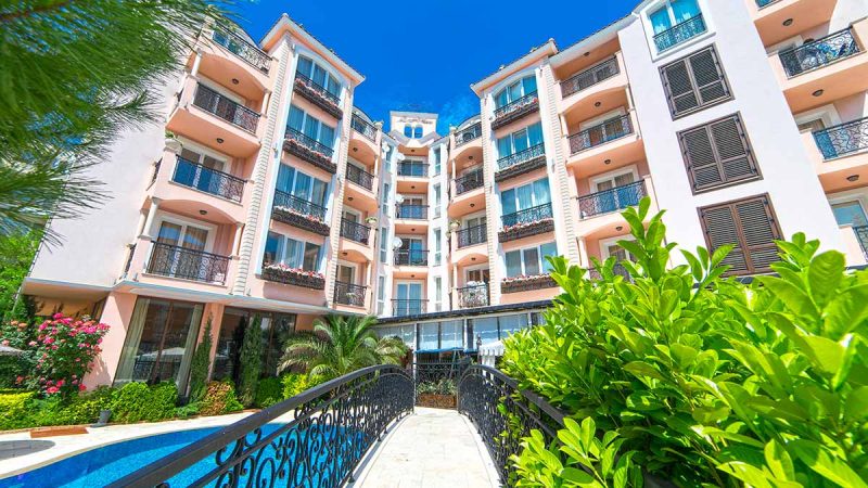 Wir bieten ein kompaktes Apartment mit einem Schlafzimmer im Elite-Komplex Roman Marina, Sonnenstrand.