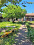 Der Garten ist gut gepflegt, hat Obstbäume und Ackerland.