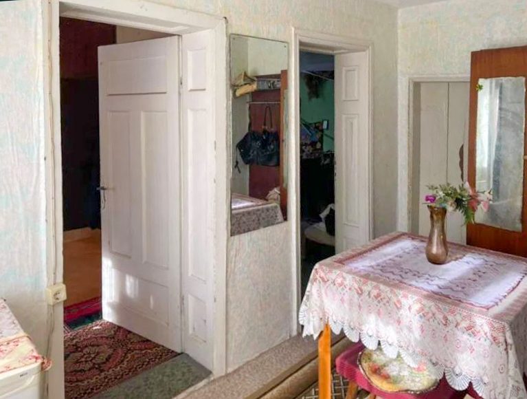 Drei Schlafzimmer, Flur, Abstellraum, internes Bad und WC, Küche mit Wohnzimmer, Keller.