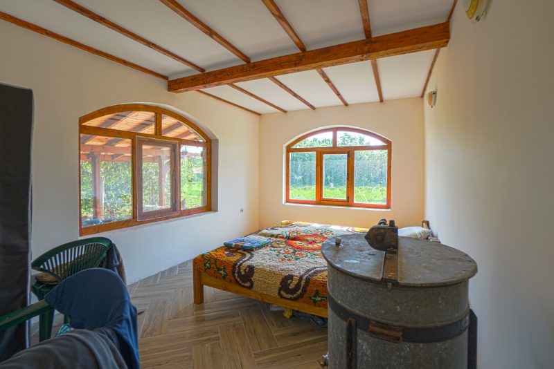 Die Fenster sind aus Holz, solide mit Doppelverglasung.