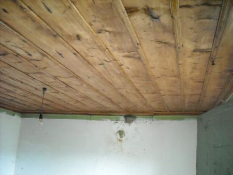 Erster Stock: Eine interne Treppe führt zu ihm. Hier finden Sie einen Korridor und zwei Schlafzimmer. Die Wände sind aus Ziegel und Steine. Der Bodenbelag ist Zement und die Rahmen der Fenster sind aus Holz.