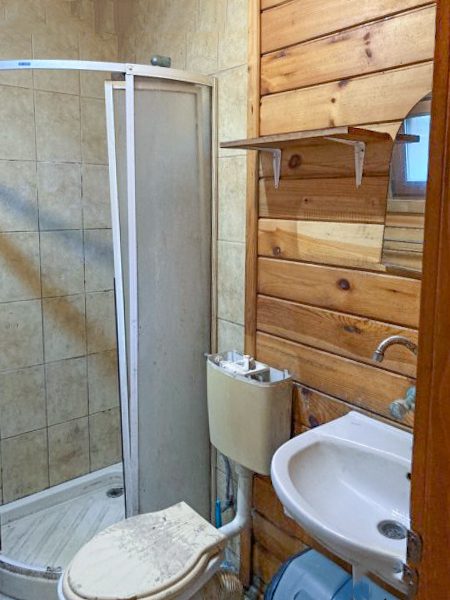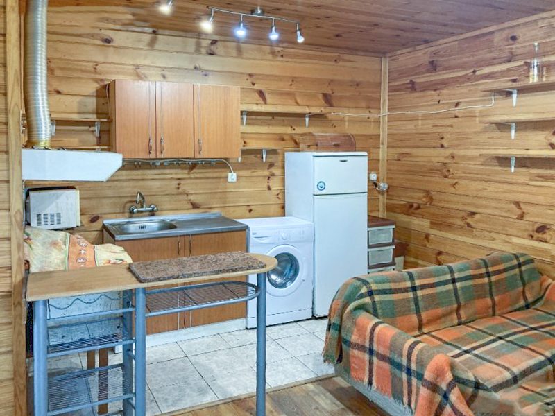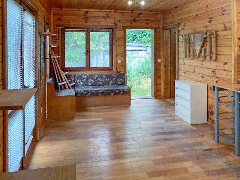 Haus 1 ist Backstein. 80 qm + 25 qm Garage. Es besteht aus einem Wohnzimmer, einer Küche, zwei Schlafzimmern, einem Badezimmer mit Toilette. Zur Reparatur.