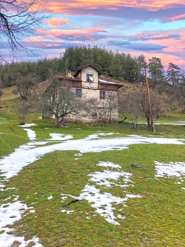 Die restlichen Gebäude sind renovierungsbedürftig und werden derzeit als Scheune genutzt. Das Anwesen befindet sich auf einem abfallenden Hügel, von dem aus Sie einen herrlichen Blick auf das gesamte Tal haben, das für seine Kirschblüten berühmt ist. Neben dem Haus befindet sich ein Obstgarten. Auf der Rückseite des Haupthauses führt das Grundstück zu einem Wald, von wo aus der Nationalpark oberhalb von Bansko zu sehen ist.