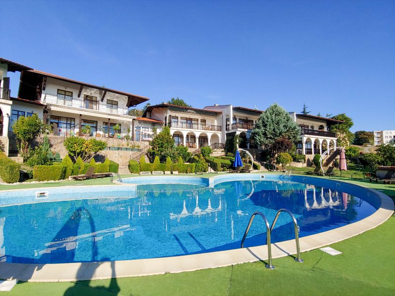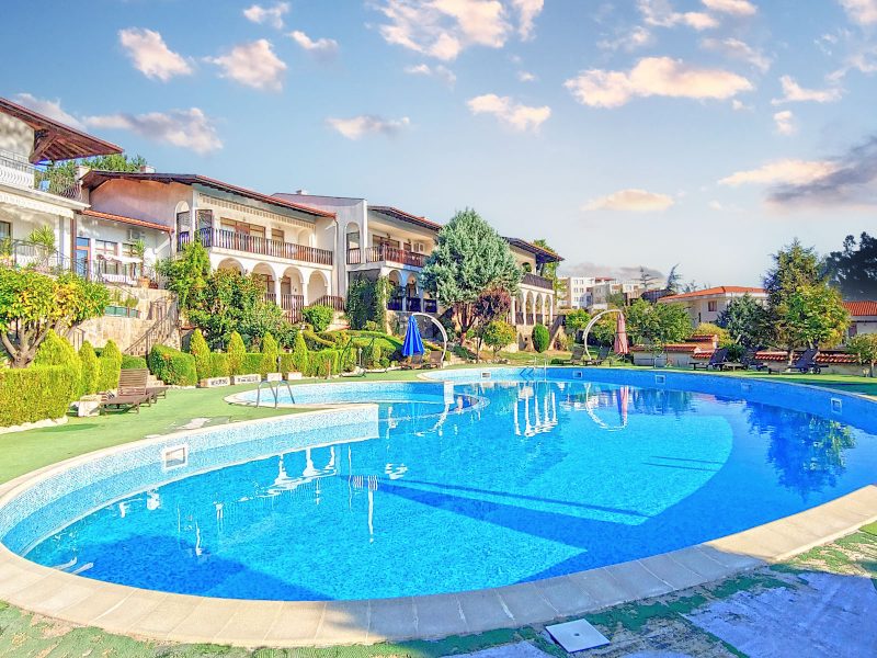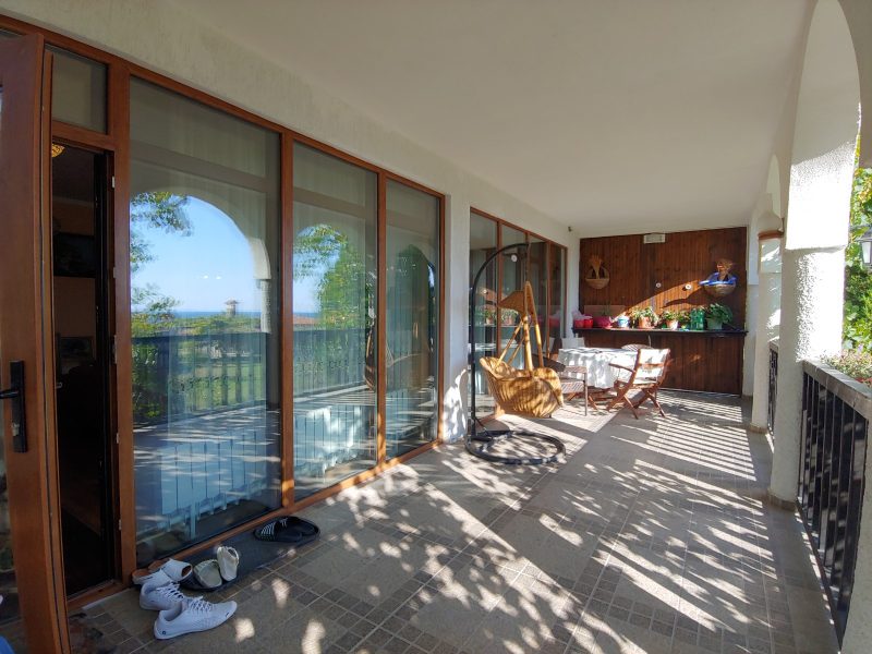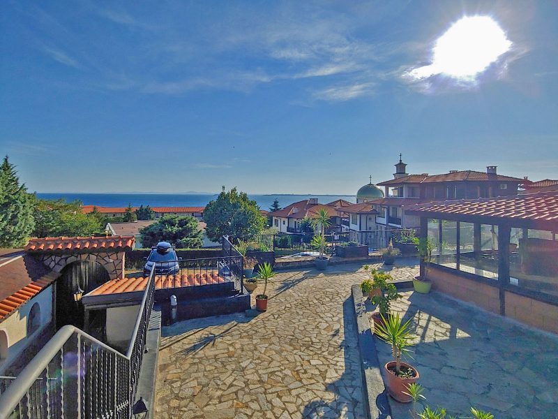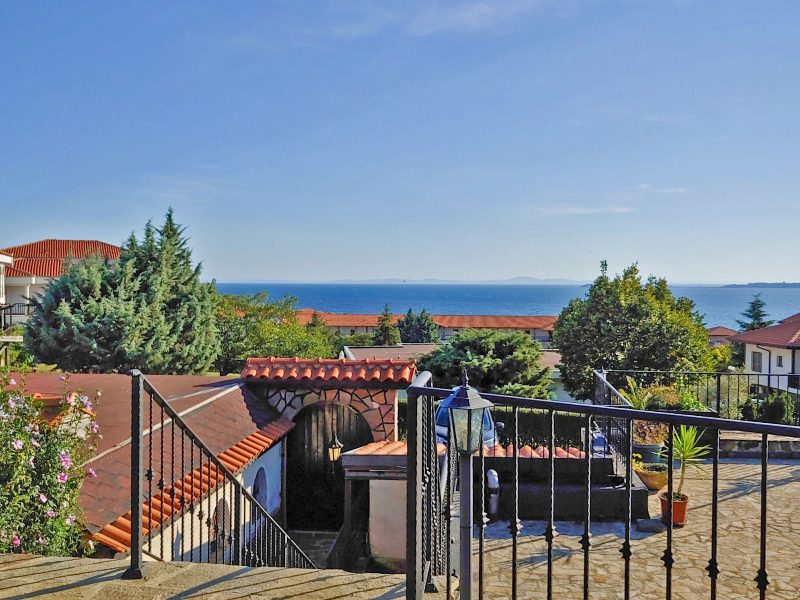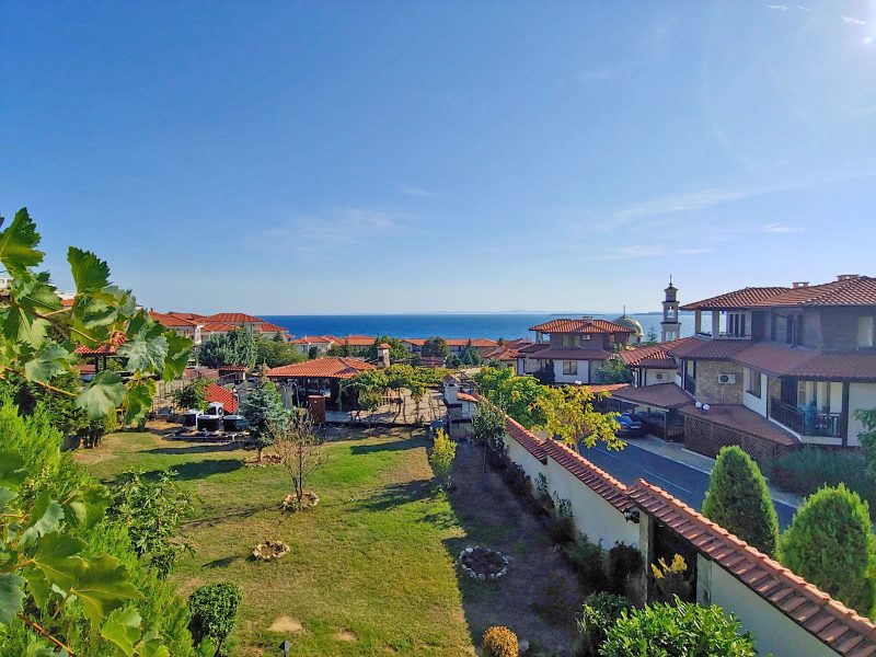 Im Panorama-Komplex, Sveti Vlas, Bulgarien, steht ein großes zweistöckiges Haus mit Meerblick zum Verkauf.
