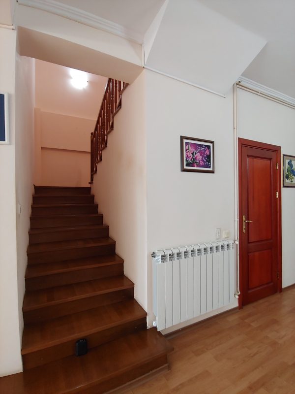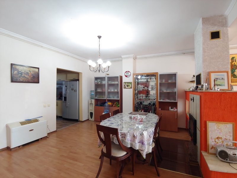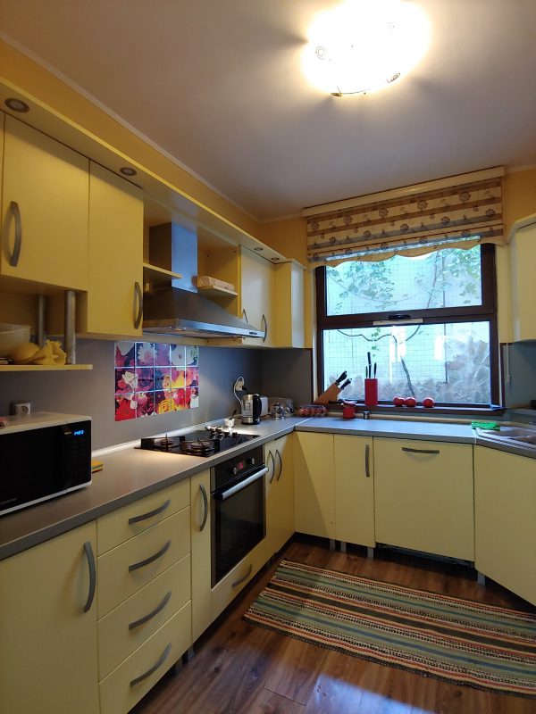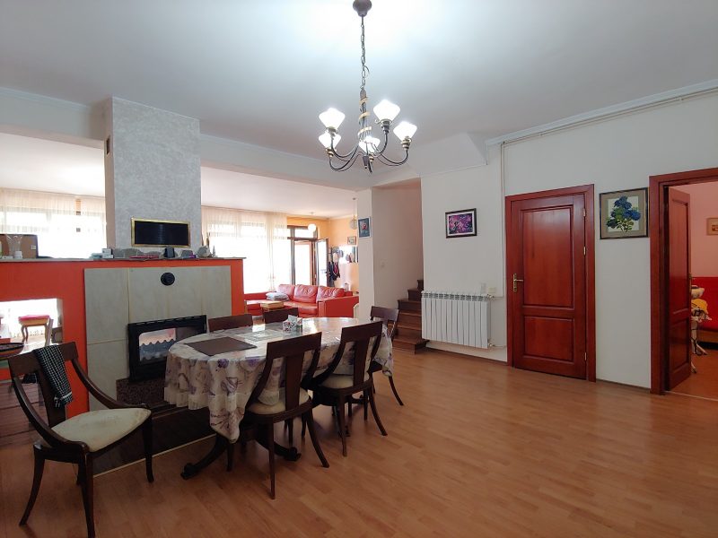 Gesamtfläche - 312 qm Das Haus besteht aus zwei Etagen. Im Erdgeschoss: eine große Terrasse - ein Eingang, ein geräumiges Wohnzimmer mit Kamin, ein Esszimmer, eine Küche in einem Erker, ein Badezimmer mit Dusche, eine Waschküche - ein Lager, ein Büro. Vom Büro aus gelangt man in den Hinterhof, von wo aus man in eine große Garage mit Heizraum gelangt. Von der Garage aus gelangt man in einen kleinen Garten.