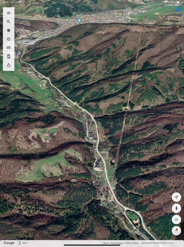 6049 m2 großes Baugrundstück, nur 2 km von der Stadt Etropole entfernt