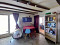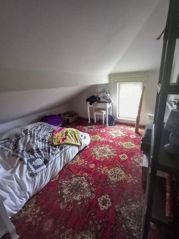 In der Ecke des renovierten Dachgeschosses mit Blick auf den Vorgarten befindet sich ein Schlafsofa, während sich am anderen Ende das fünfte Schlafzimmer mit Blick auf den Pool befindet.