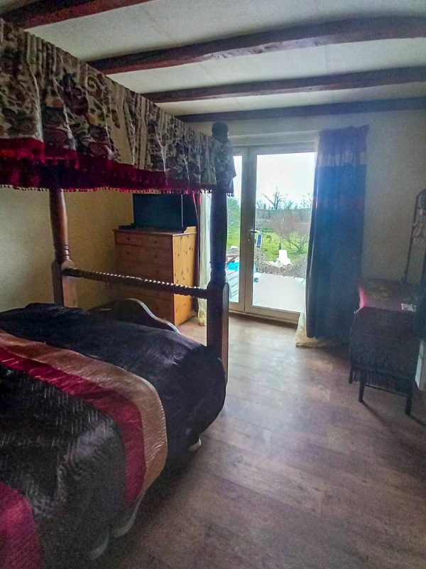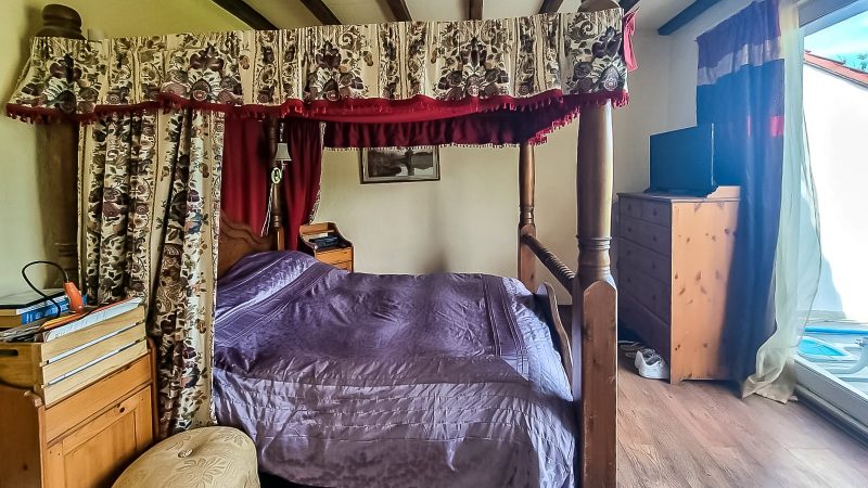 Ein großer begehbarer Kleiderschrank führt in das eigene Badezimmer im Obergeschoss, wobei das Hauptschlafzimmer einen Blick auf den Garten hinter dem Haus bietet.