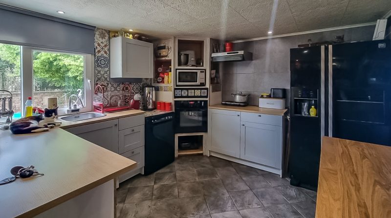 Angeschlossen ist eine riesige Garage mit renoviertem Dach und isolierter Hundehütte.