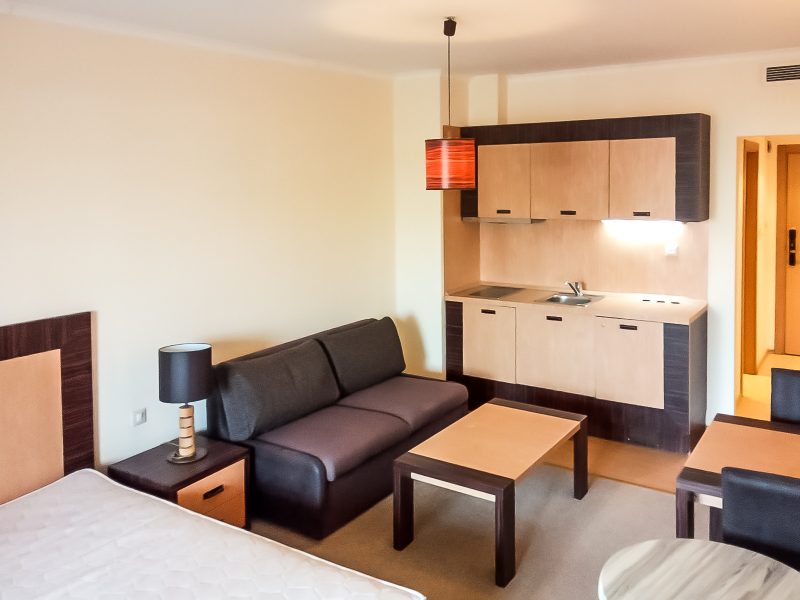 Komplett möbliertes 48 m² großes Studio in der 3. Wohnetage in Sunny Beach. Studio zum Verkauf im Majestic-Komplex in erster Meereslinie.