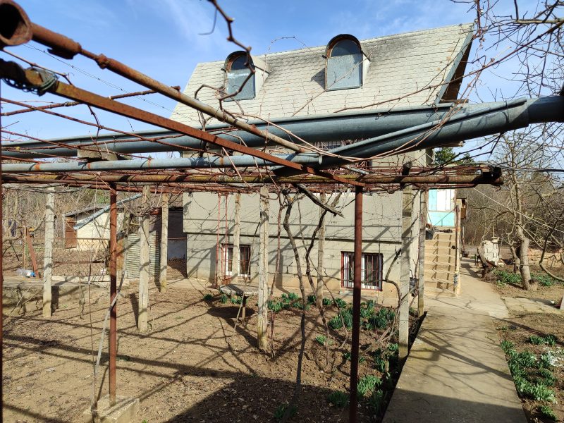 Das Haus ist mit Ziegeln verputzt und mit Dämmstoff und Putz auf einer Platte versehen, auf zwei Etagen und einem Erdgeschoss. Das Anwesen verfügt über eine Doppelgarage, einen Grillplatz, neben einem Nadelwald mit PVC-Fenstern, eingezäunt. Im Erdgeschoss gibt es 3 Zimmer und einen Flur, im ersten gibt es zwei Zimmer, eine Küche, Bad und WC und eine Treppe, im zweiten gibt es zwei Zimmer mit Balkon.