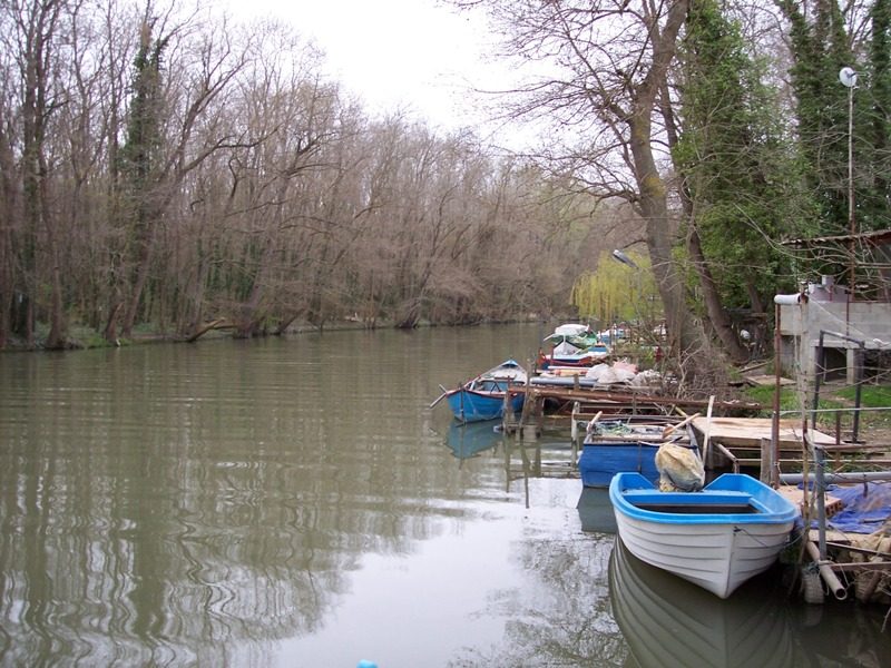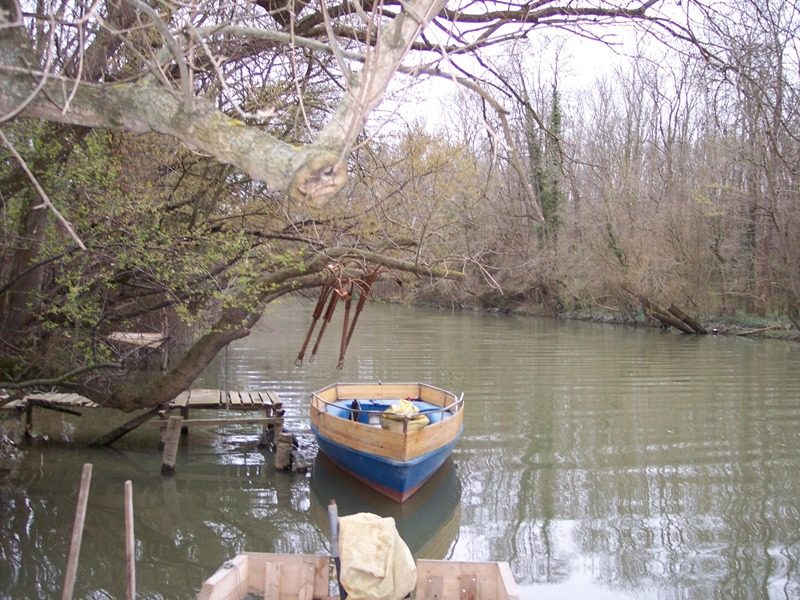 - Liegeplatz für ein kleines Motorboot für das Gehen auf dem Fluss Kamchia konzipiert.