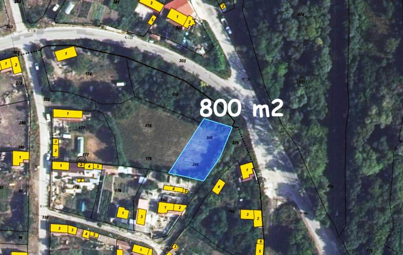 Zum Verkauf steht ein 800 m² großes Baugrundstück, 25 km vom Meer entfernt.