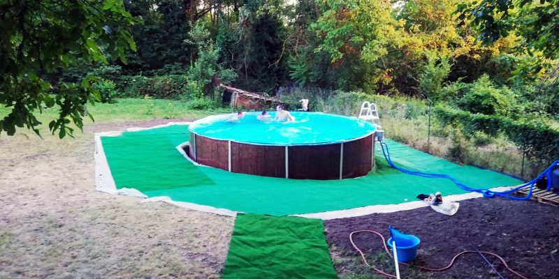 Im Garten befinden sich ein Grillplatz, ein Außenpool und ein Kinderspielplatz.
