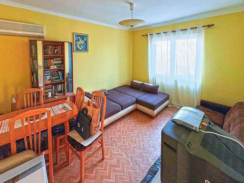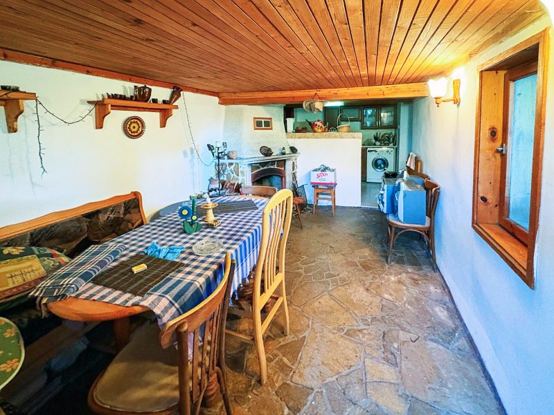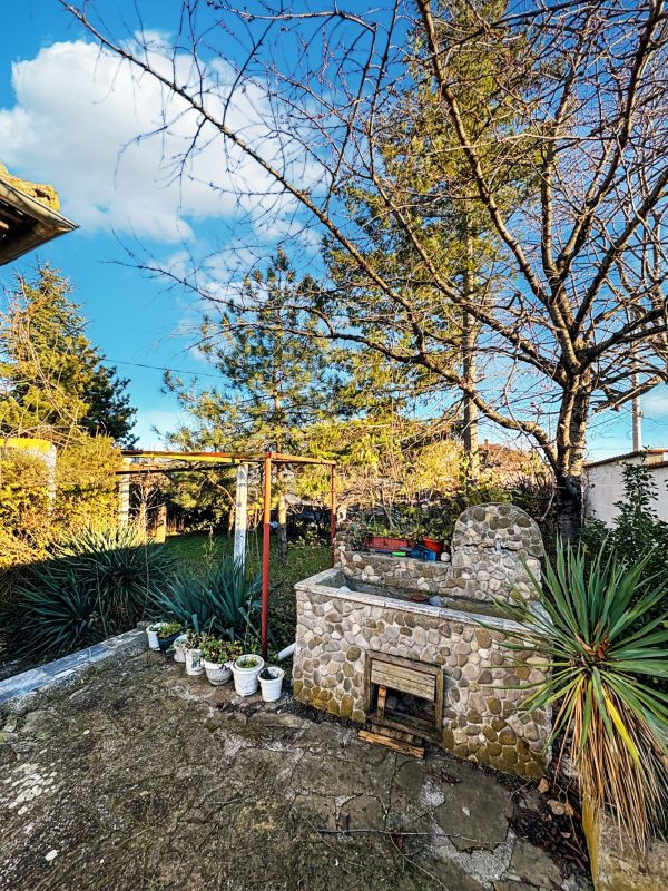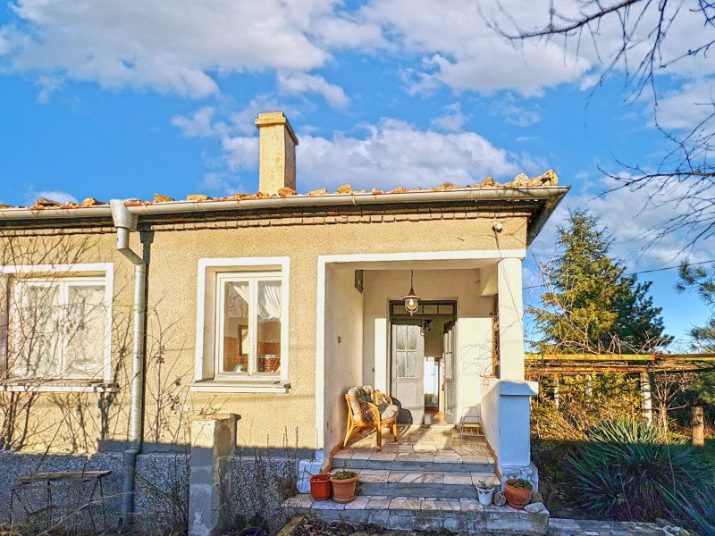 Zum Verkauf steht ein freistehendes, eingeschossiges Haus mit 100 m² Wohnfläche, einem 1060 m² großen Grundstück und einer Garage. Das Haus befindet sich in exzellenter Lage an einer asphaltierten Straße am Ortseingang von Medovo, 15 km vom Meer entfernt.