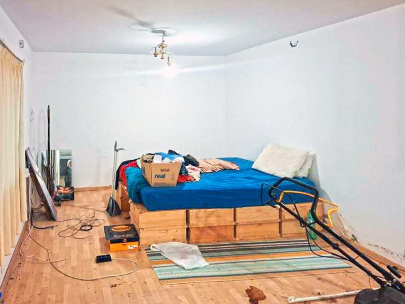 Auf dem Grundstück befindet sich ein Gebäude, das sich je nach Bedarf des neuen Eigentümers für eine Reparatur oder einen Wiederaufbau eignet.