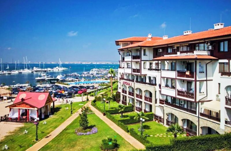 Über den Komplex: „Arena 1“ ist Teil einer exklusiven, geschlossenen Ferienanlage in erster Strandreihe im luxuriösen Ferienort Sveti Vlas. Das Gebäude grenzt direkt an den Hauptstrand des Ortes, und in unmittelbarer Nähe befindet sich der Yachthafen Marina Dinevi. Die Anlage besticht nicht nur durch ihre perfekte Lage, sondern auch durch hochwertige Bau- und Ausstattungsarbeiten, 24-Stunden-Sicherheitsdienst, luxuriöse Gemeinschaftsbereiche sowie zahlreiche Restaurants und Cafés. „Arena 1“ wurde 2008 erbaut und in Betrieb genommen. Die Gemeinschaftsbereiche und die Gebäude werden stets sorgfältig gepflegt.