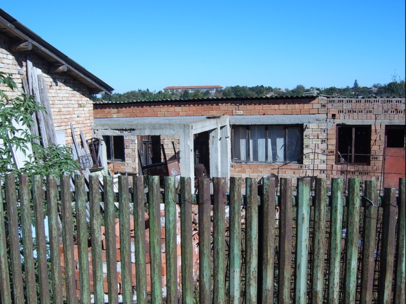 Flachziegel Haus hat vier Schlafzimmer, Küche, Wohnzimmer, Bad, WC und Garage.