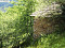 Erdgeschoss: Hier ist ein kleiner Raum wie ein Keller genutzt angeordnet. Die Wände sind aus Steinen.