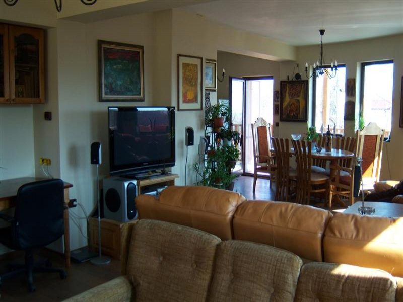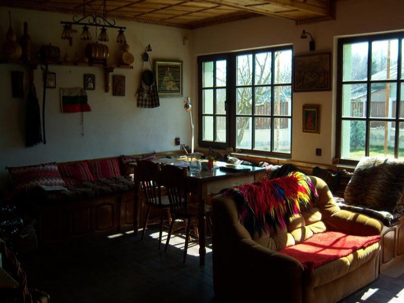 Die Böden sind mit Fliesen, spanische Produktion abgedeckt. Die Decke ist mit dekorativen Details in der bulgarischen Stil geschnitzt amerikanischer Eiche eingerichtet. Innen Wohnzimmer mit Kamin ergänzt die Atmosphäre von Wärme und Gemütlichkeit. Küchenmöbel aus massivem Holz, Marmor-Arbeitsplatte kararskogo gemacht.