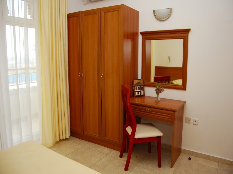 2 Betten. | | | | |. Sofa, Bad mit Dusche, Balkon mit Meerblick und Parkblick, Sat-TV, Telefon, Kühlschrank und Klimaanlage.