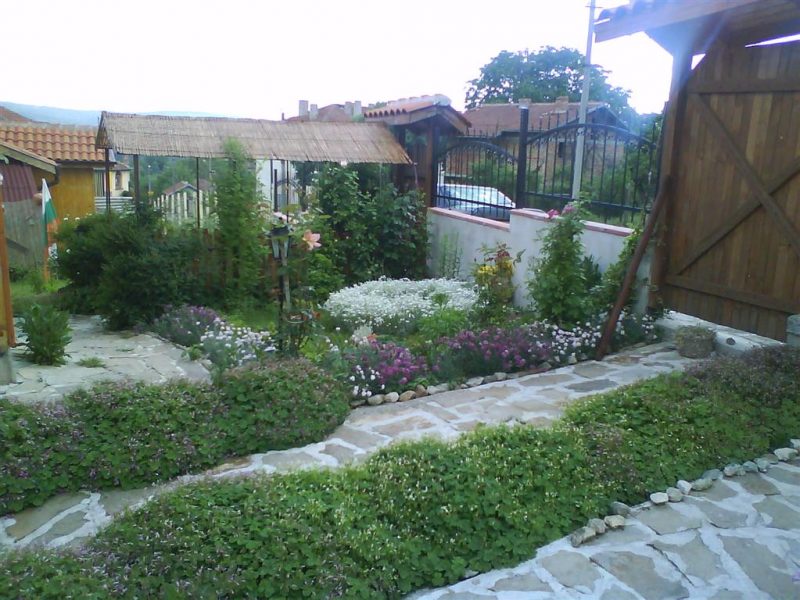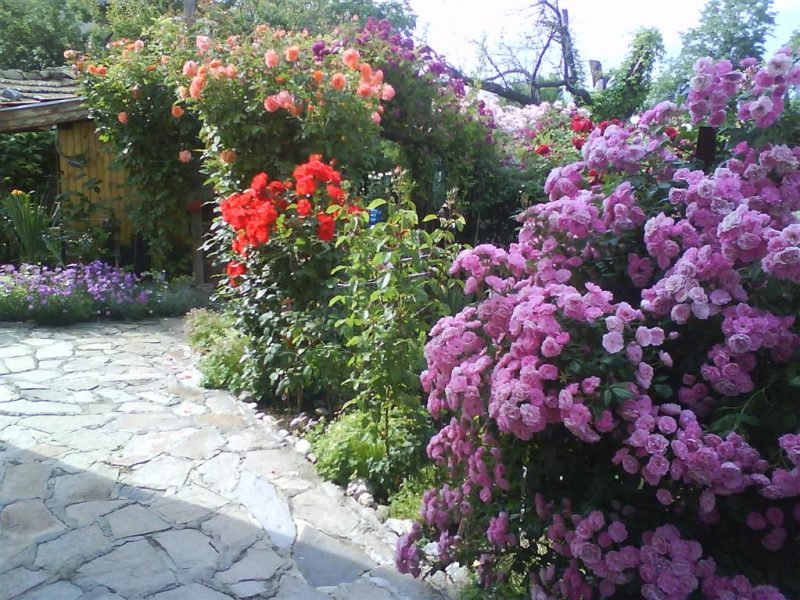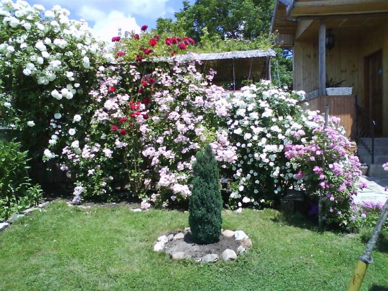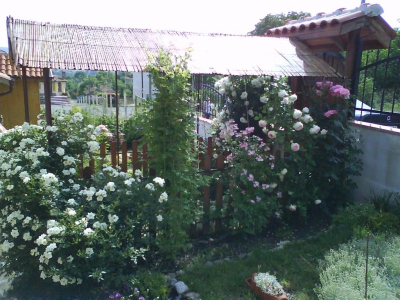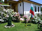 200 Rosen und vielen Blumen - Der Hof ist mit immergrünen Sträucher kultiviert.