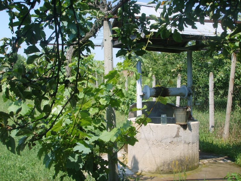 Der Garten ist 1000 Quadratmeter. Es gibt Obstbäume, Gemüsegarten, vielen Nebengebäuden. Es gibt gut. Toilette ist draußen. Das Haus öffnet sich auf der asphaltierten Straße.