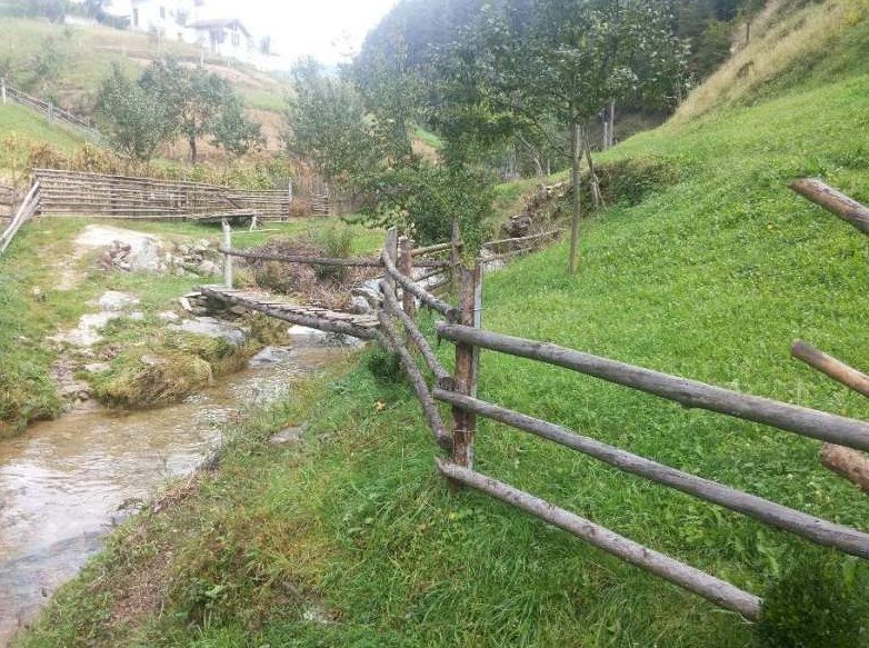 Die Eigenschaft, die 1.800 Quadratmeter ist, wird mit einem Berg Fluss überquert.