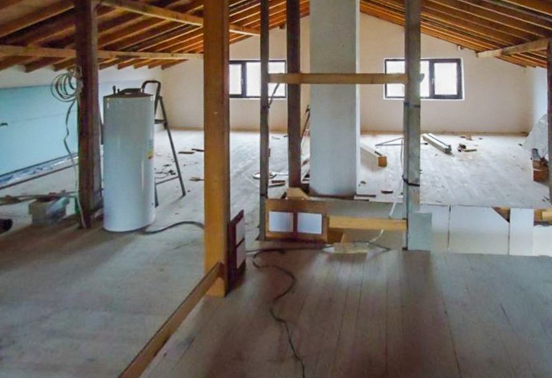 - Zweiter Stock 107 qm .: ein großes Zimmer - für 4 Schlafzimmer und ein Badezimmer gemacht werden.