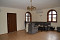 - Erster Stock: Küche und Wohnzimmer mit Kamin, Bad, Abstellraum, Balkon, Garage Tür zu, Treppe in den zweiten Stock.
