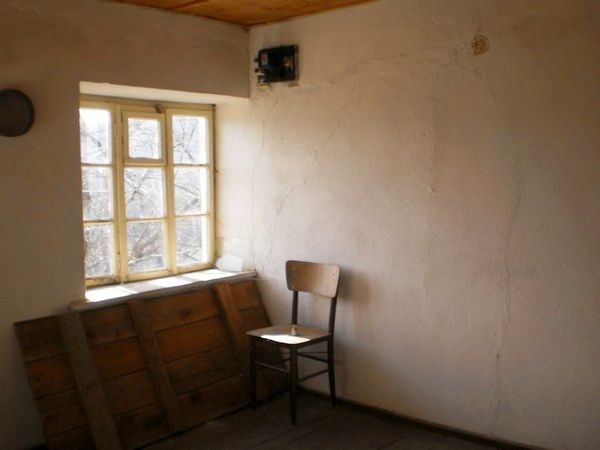 Erdgeschoss: Hier können Sie einen Flur, die Zimmer und einen Schrank zu finden. Die Wände sind aus Steinen. Der Fußboden und die Rahmen der Fenster sind aus Holz.