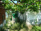 Im Garten gibt es Nebengebäude und ein Brunnen.