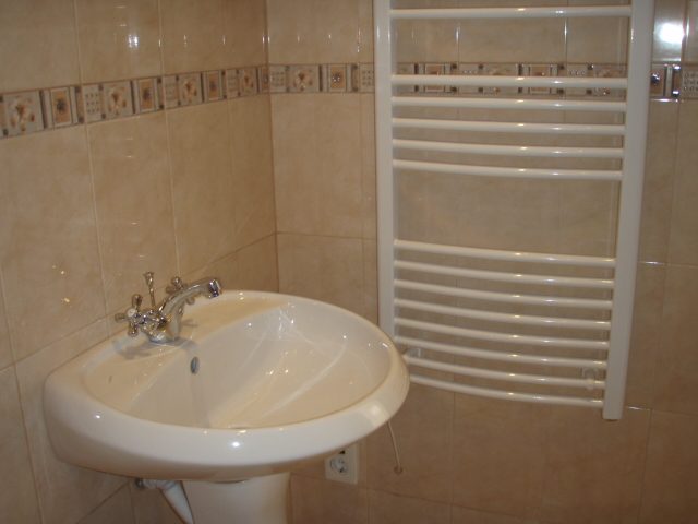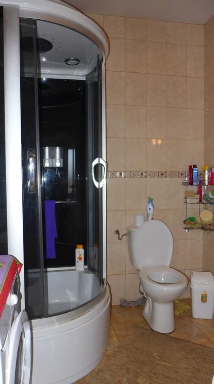 Die Badezimmer Wände wurden ebenfalls gefliest. Es ist eine moderne Dusche im Bad mit verschiedenen Massage-Möglichkeiten und Radio.